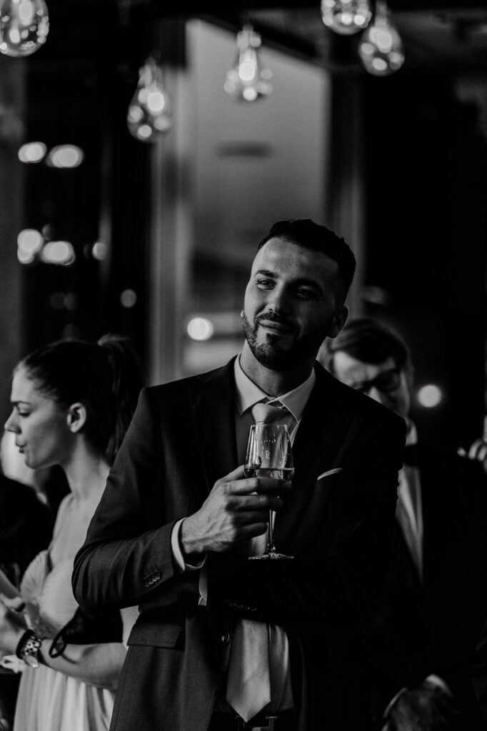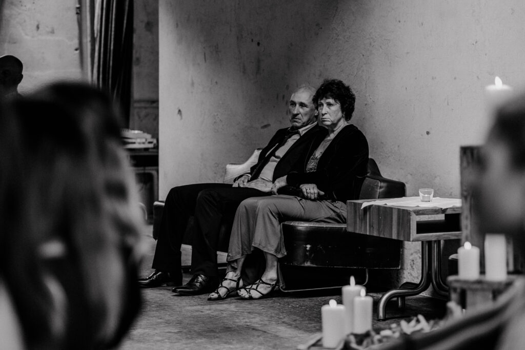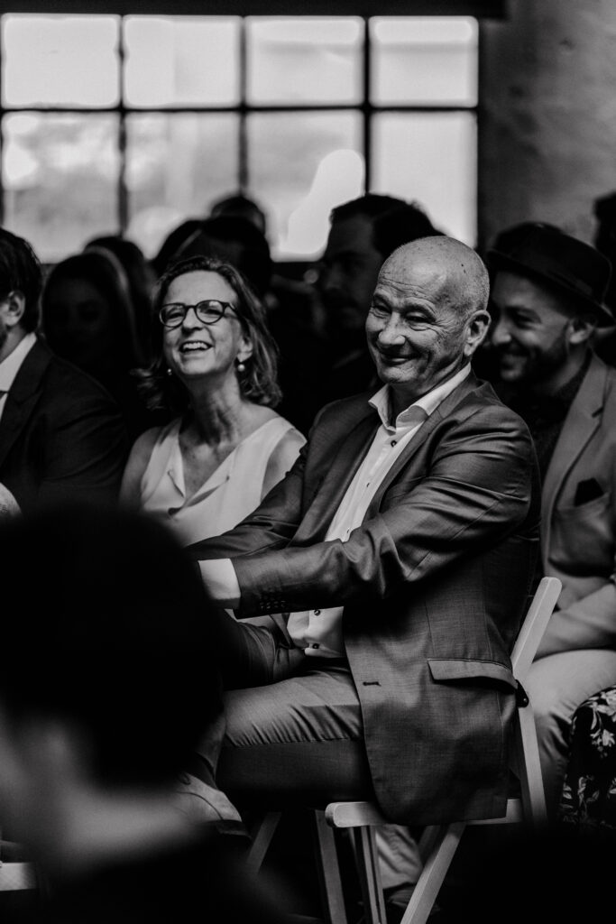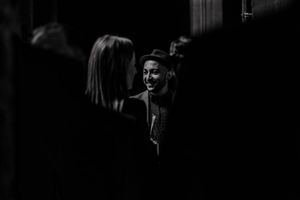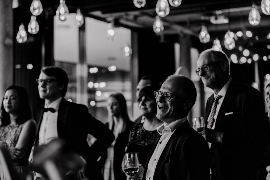 Sie meinte „Hey los chömed d’Sunne isch uh mega geil jetzt“. Wir haben uns dann im Saal hingestellt und hinter uns befanden sich die Gäste und die Abendsonne,